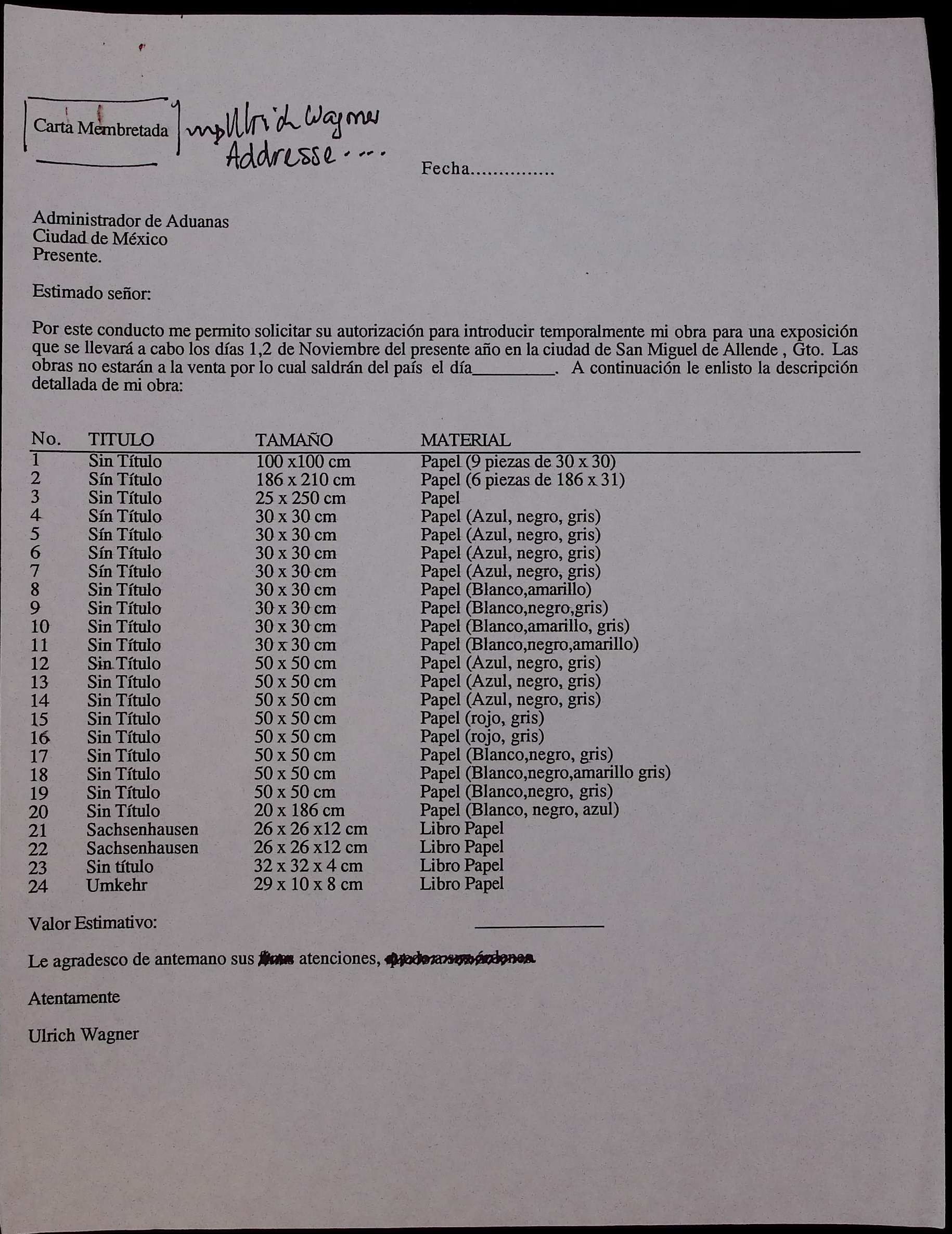 Carta al administrador de aduanas