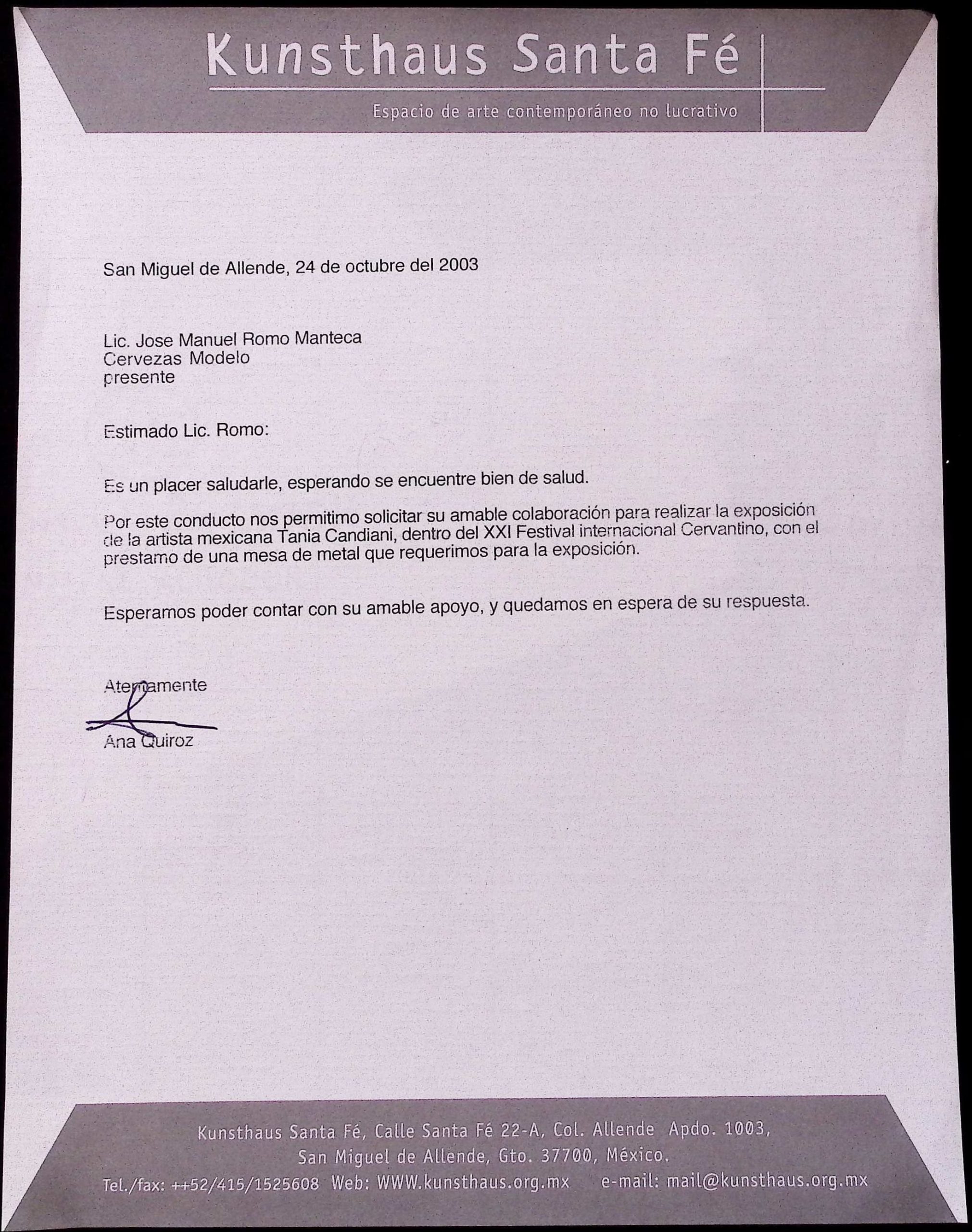 2003, 2003 - aq, 2003 - tc, Ana Quiroz, Cervecería Modelo, Kunsthaus Santa Fe, Tania Candiani