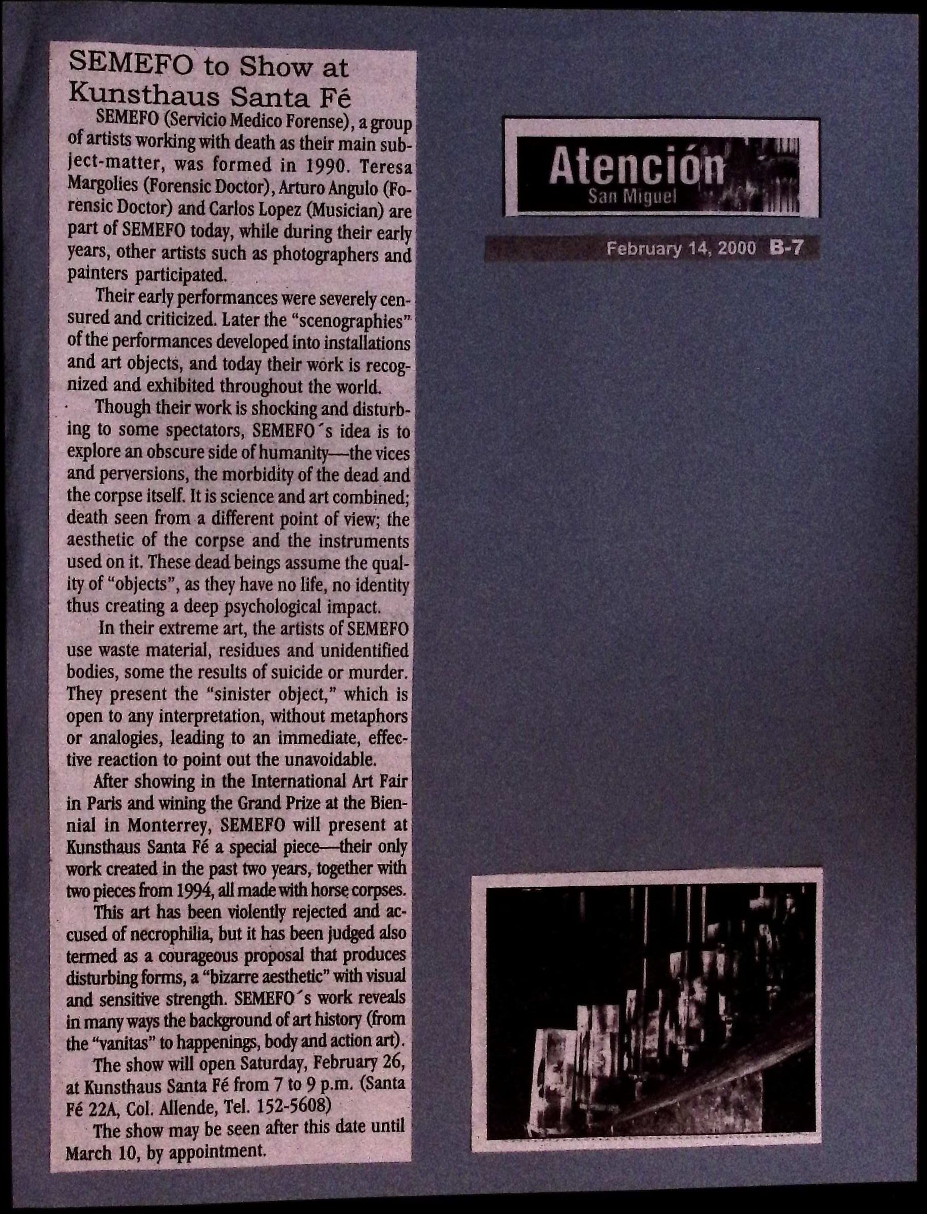 2000 - khs, 2000 - se, Atención San Miguel, Kunsthaus Santa Fe, SEMEFO