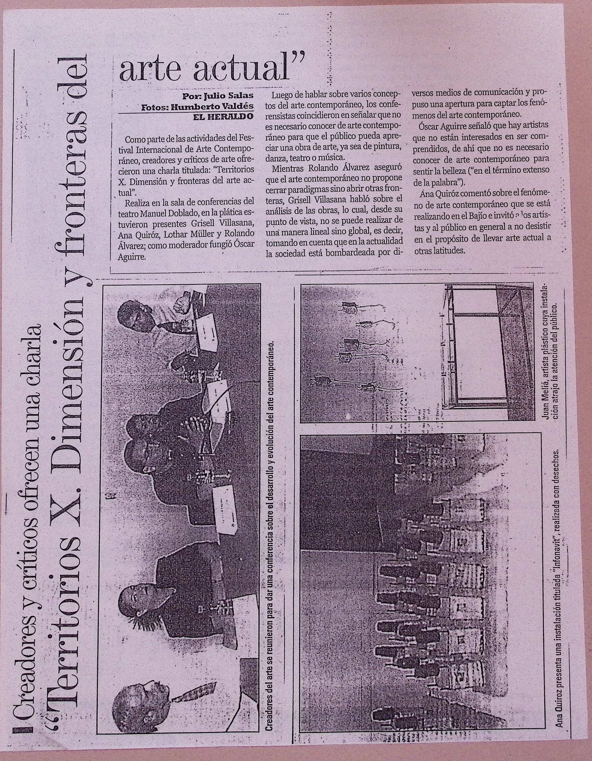 Ana Quiroz, Arturo Elizondo, Dianne Pearce, Juan Meliá, Leonardo Ramírez, Lothar Müller, Marcin Berdyszak, Marta Palau, Omar Ureña, Óscar Aguirre, Santiago Sierra, Yasuhiro Imai