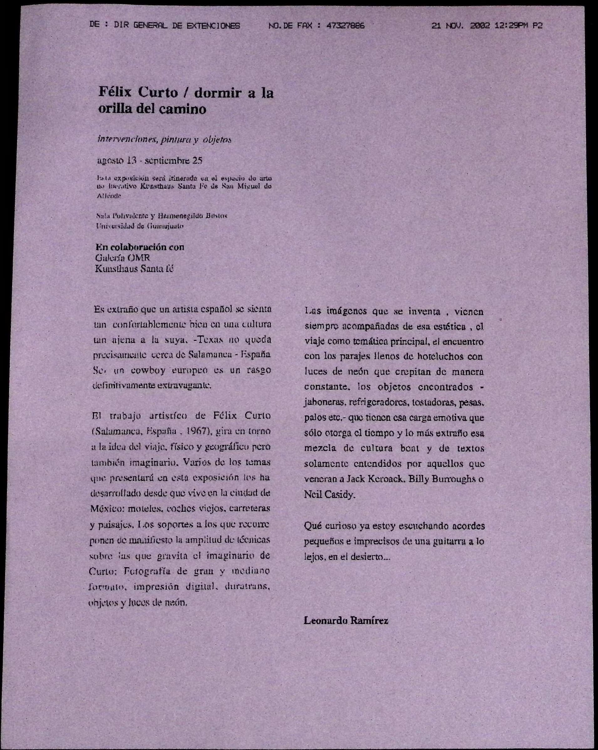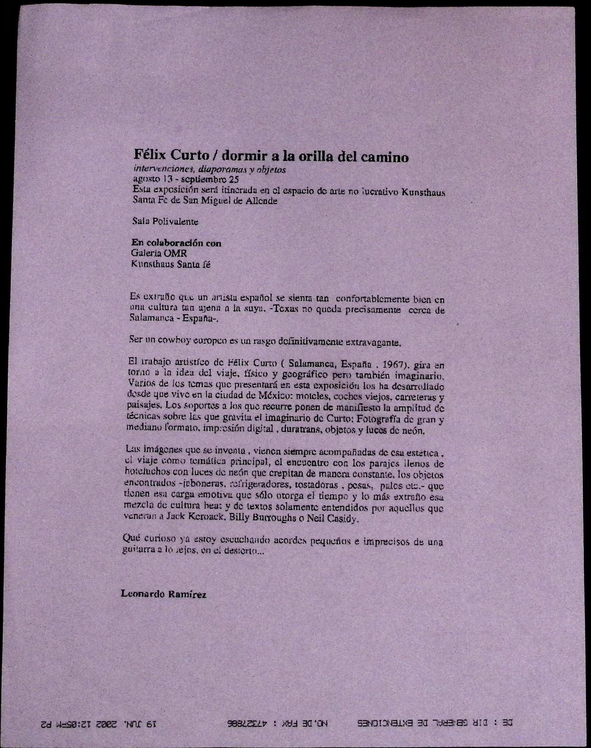 Texto curatorial «Dormir a la orilla del camino»