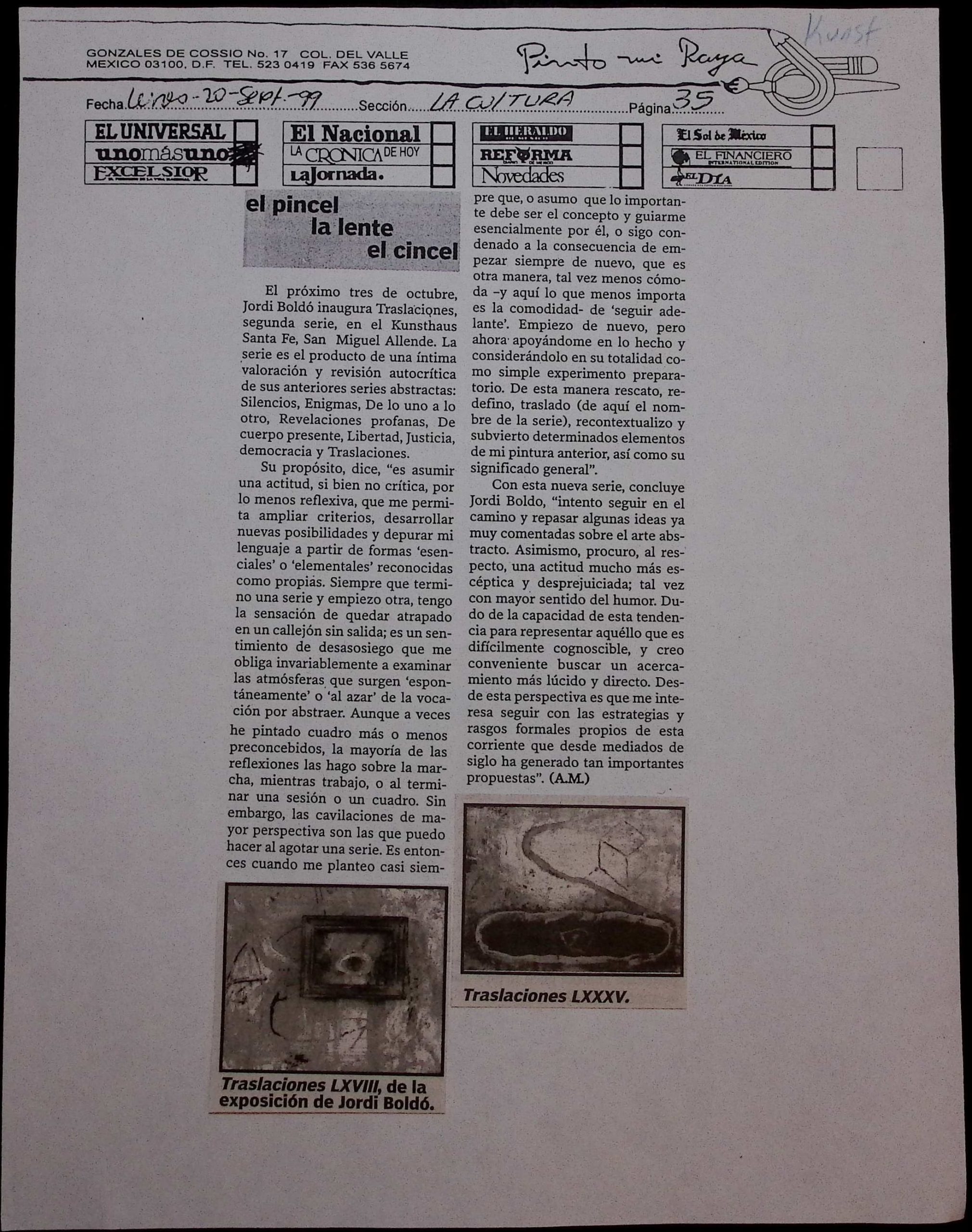 1999, 1999 - jb, 1999 - khs, Jordi Boldó, Kunsthaus Santa Fe, Pinto mi Raya, Uno Más Uno