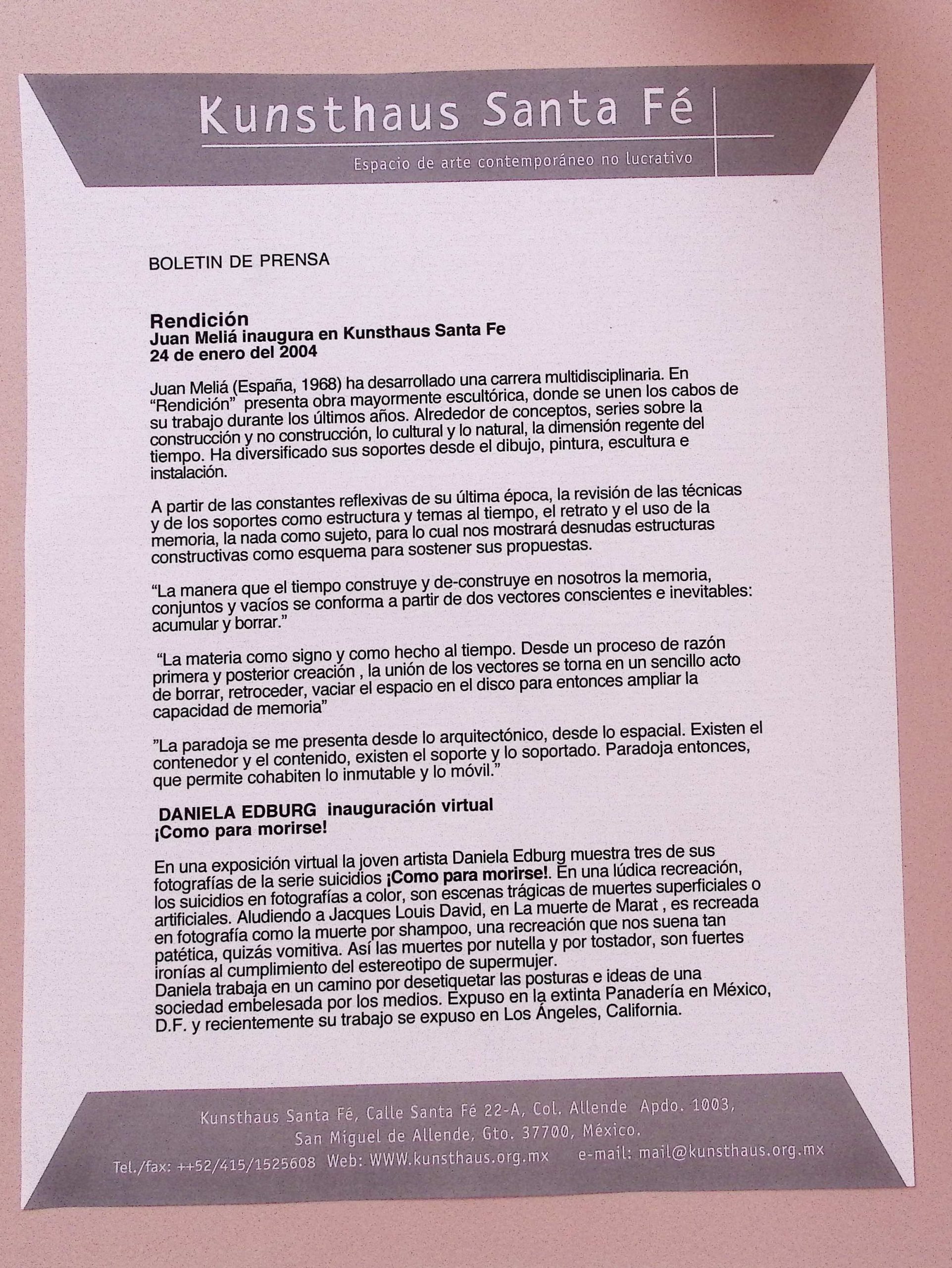 2004, 2004 - de, 2004 - jm, 2004 - khs, Daniela Edburg, Juan Meliá, Kunsthaus Santa Fe