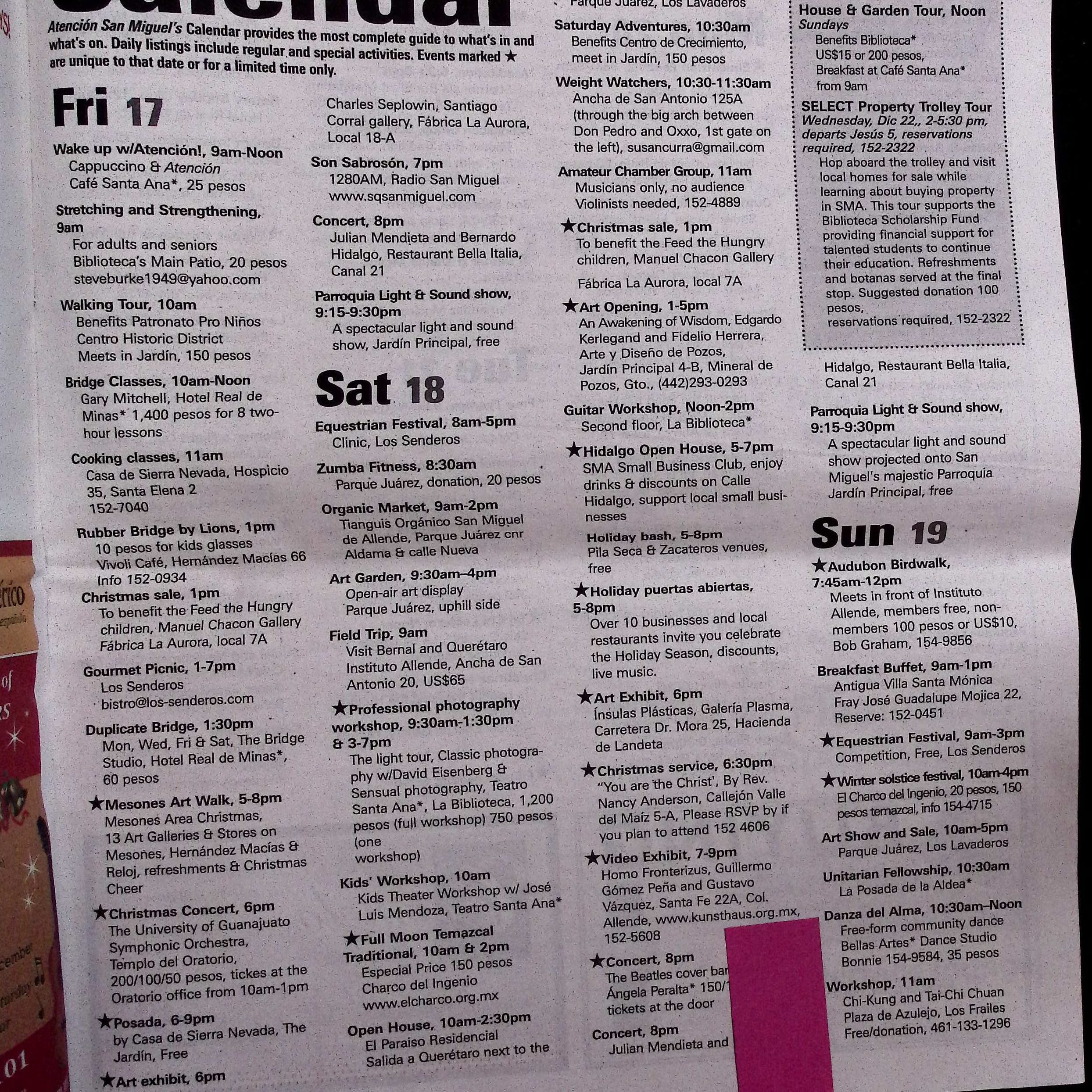 Aparición en calendario