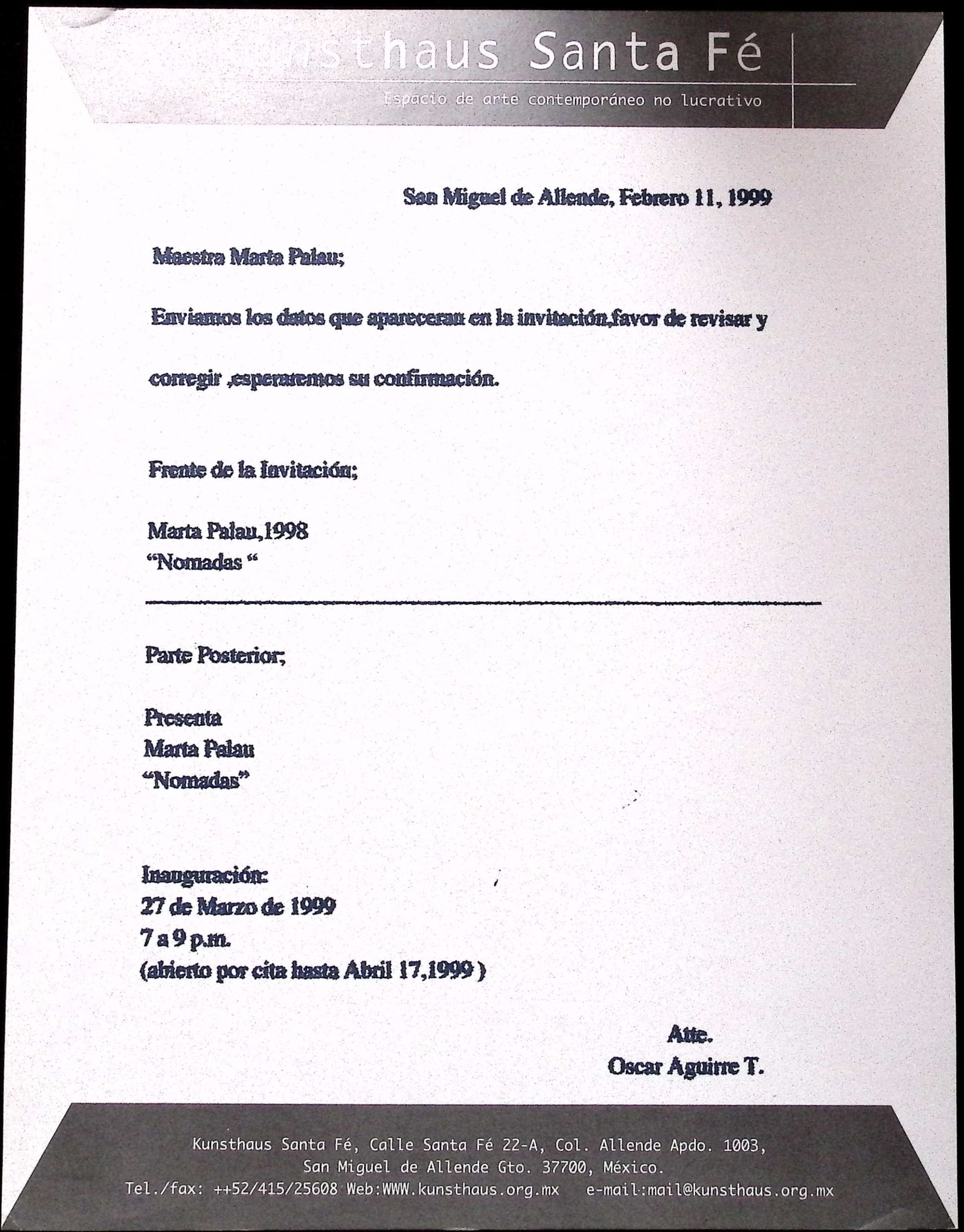 1999, 1999 - khs, 1999 - mp, 1999 - oa, Kunsthaus Santa Fe, Marta Palau, Oscar Aguirre