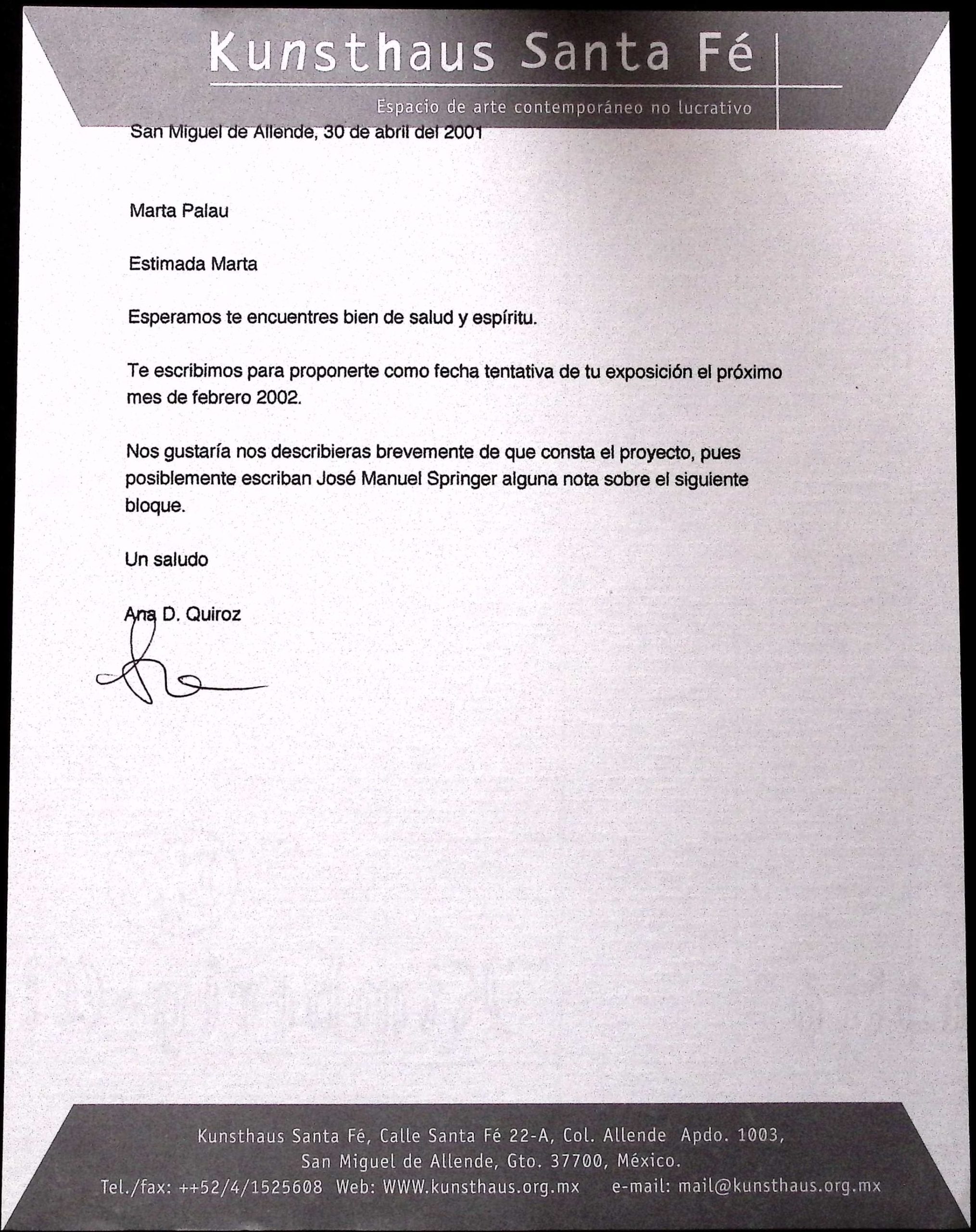 2001, 2001 - aq, 2001 - khs, 2001 - mp, Ana Quiroz, Kunsthaus Santa Fe, Marta Palau
