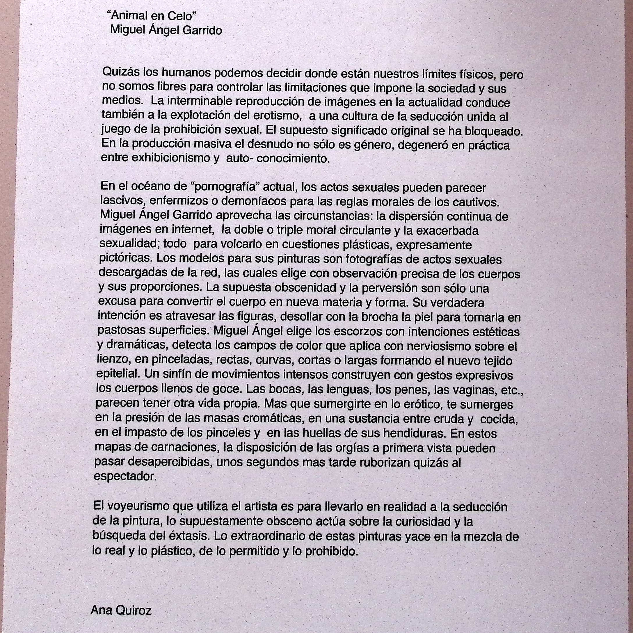 Texto de sala de «Animal en celo»