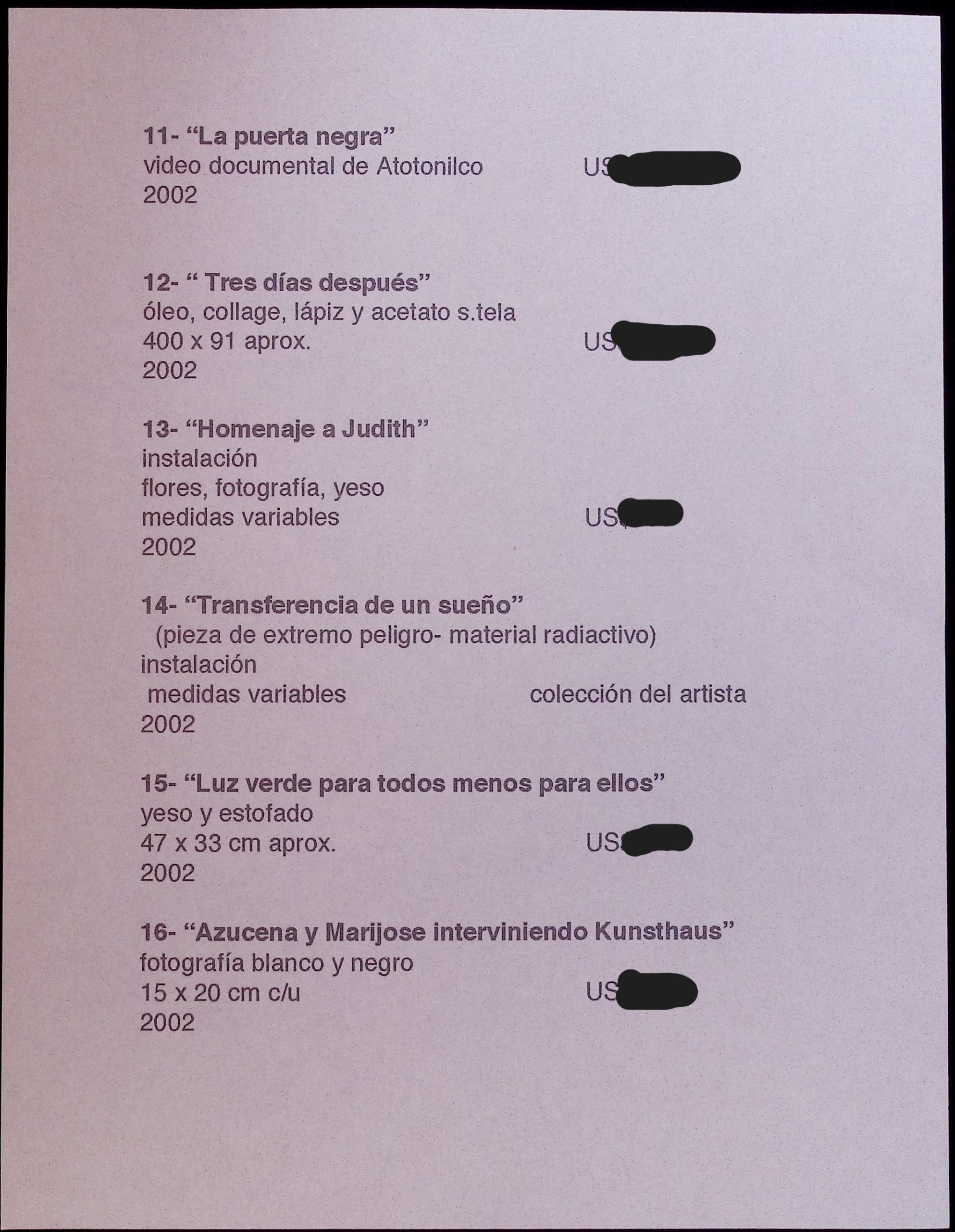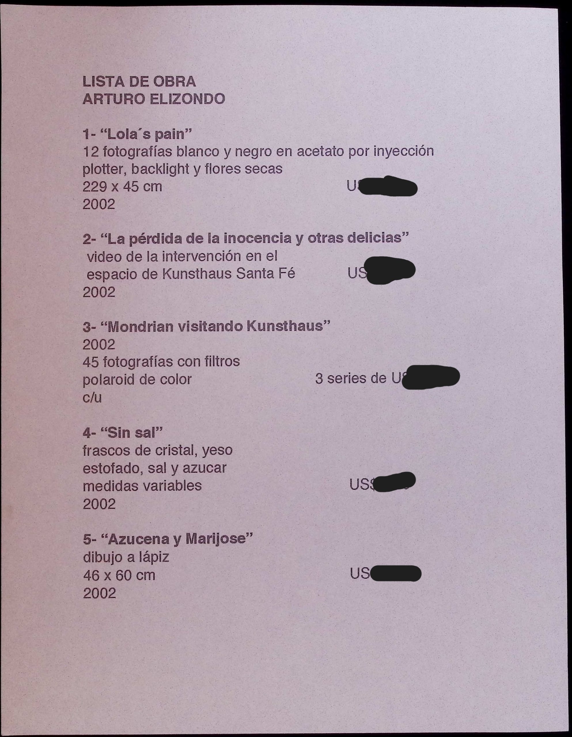 LISTADO DE OBRA